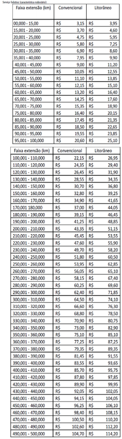 Artigo 1º: Aprovar o reajuste das tarifas relativas ao Sistema de Transporte Coletivo de Passageiro, por Ônibus, da Região Metropolitana do Vale do Paraíba e Litoral Norte (Serviços Comum e Seletivo), no que se refere às linhas cujas permissões tenham sido outorgadas pelo Poder Público Estadual, na seguinte conformidade: